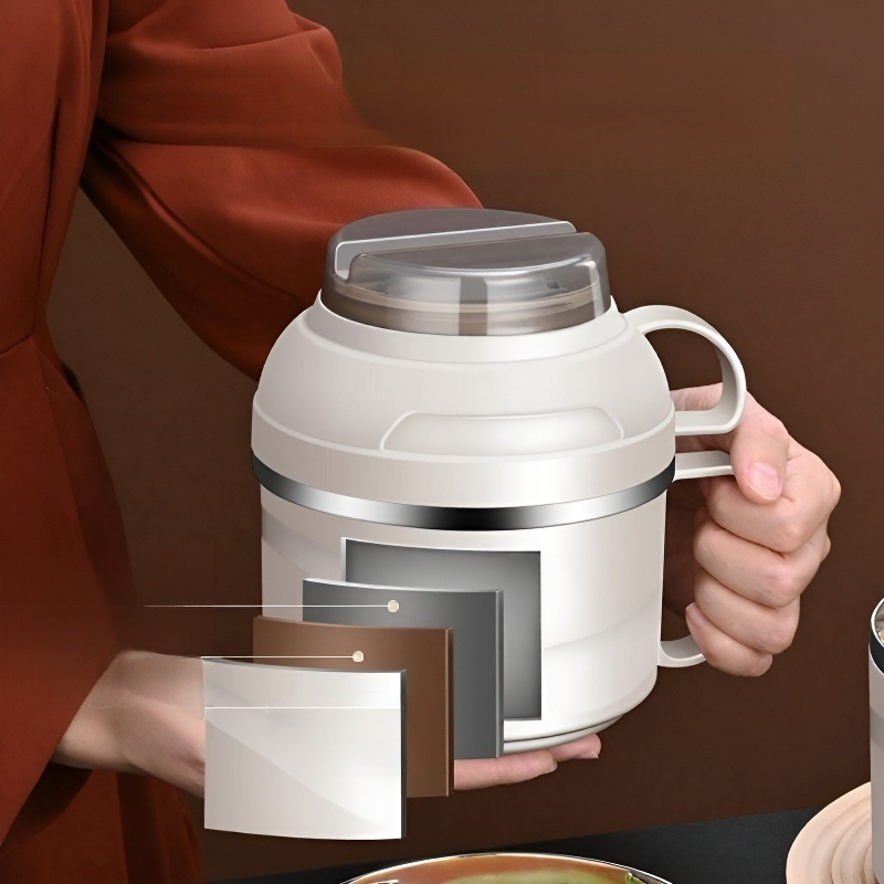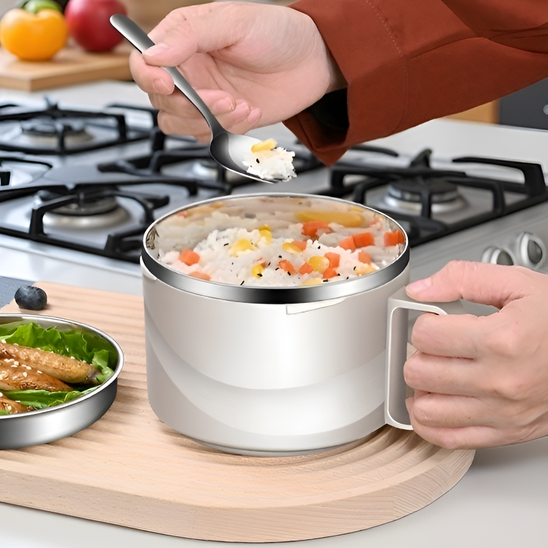 ● Made from high-quality 304 stainless steel, this portable hot snack cup is durable, rust-resistant, and safe for daily use, ensuring long-lasting performance for students and office workers alike.